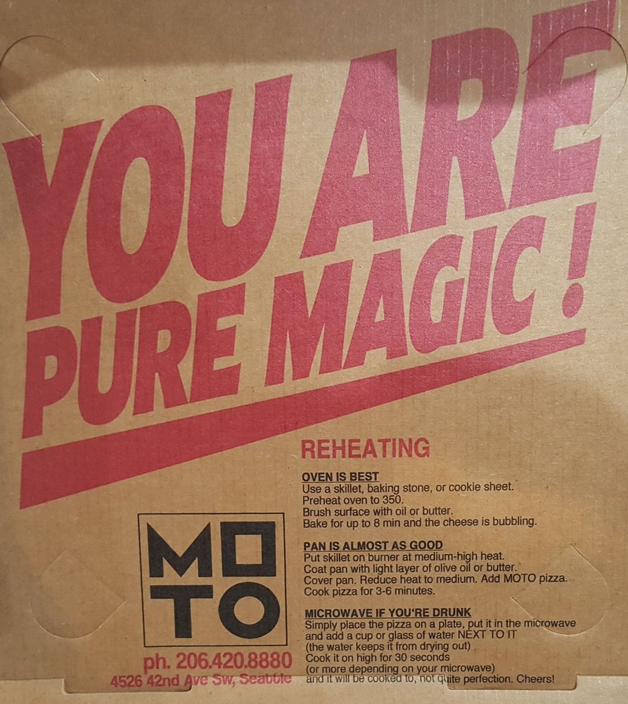 MOTO Pizza - West Seattle offers a diverse menu featuring unique pizza creations such as the Beef Adobo with pickled cabbage kimchi and black sesame seeds. The restaurant also provides a variety of vegan options like the Vegan Pepperoni with spicy honey. With amenities like outdoor seating, free Wi-Fi, and a full bar, MOTO Pizza is a great spot for casual dining or catering events. The Clam Chowdah pizza, topped with hot garlic chili oil, showcases the chef's creative flavor combinations. The Vegan Plant pizza with seasonal greens and garlic sauce is a refreshing choice for health-conscious diners. Overall, MOTO Pizza - West Seattle is a must-visit for pizza lovers seeking inventive and delicious pies in a vibrant setting.
